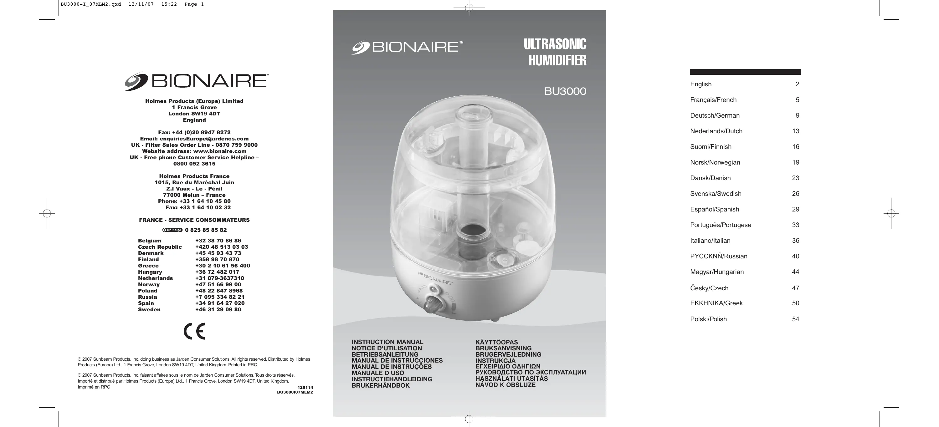 BU3000 - BIONAIRE - Notice d'utilisation et mode d'emploi gratuit