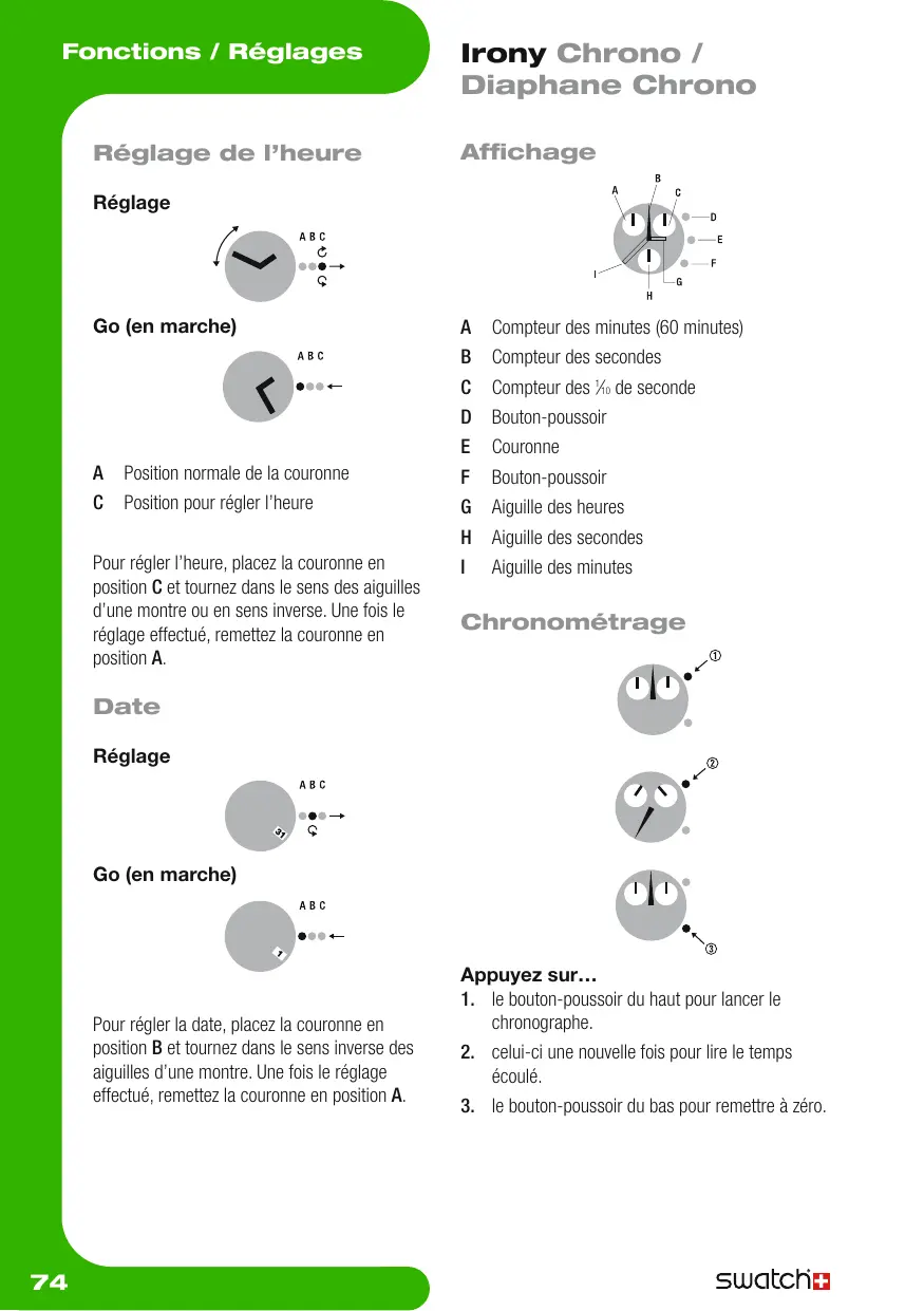 MODE D'EMPLOI IRONY CHRONO SWATCH