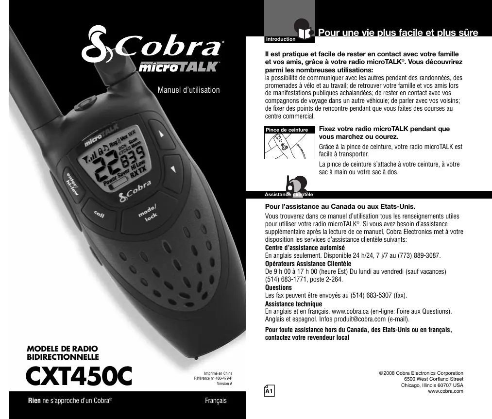 Retrouvez gratuitement la notice de l'appareil CXT450C COBRA au format PDF.