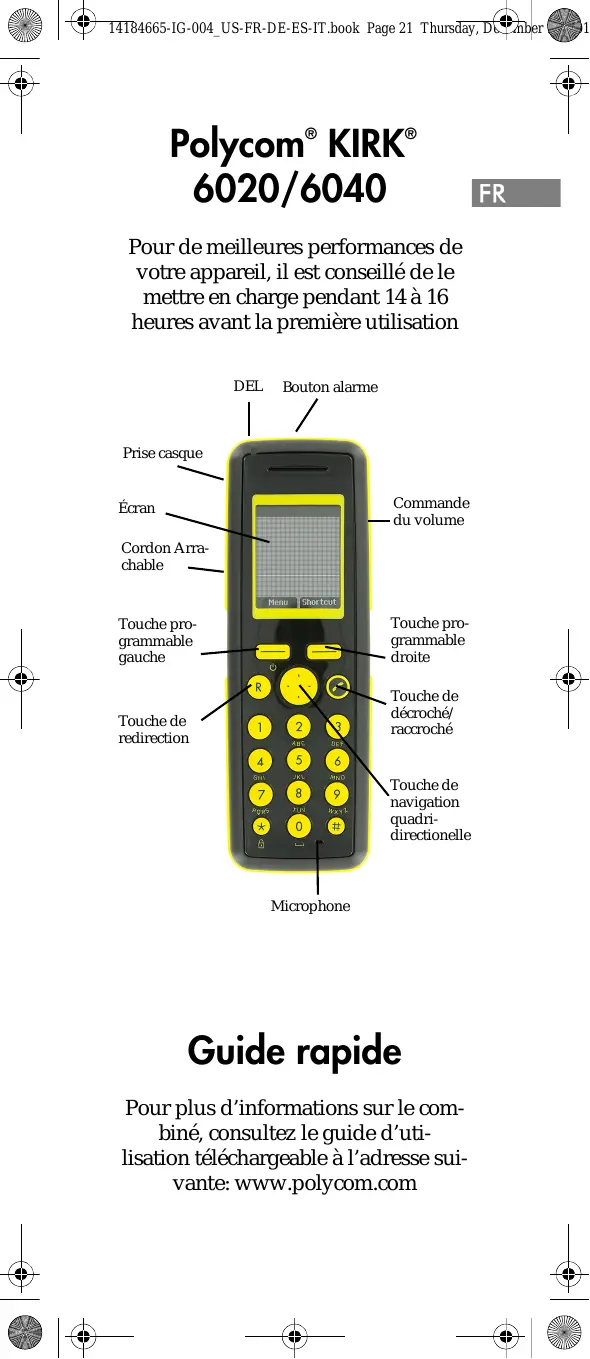 Pour plus d'informations sur le combiné, consultez le guide d'utilisation téléchargeable à l'adresse suivante: www.polycom.com