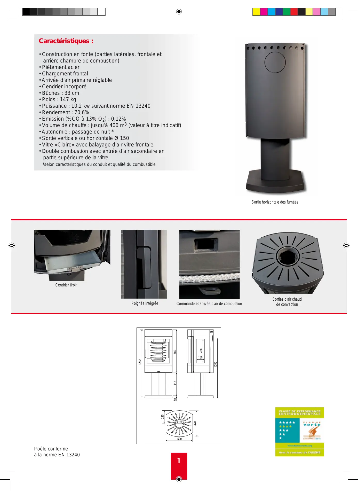 - Double combustion avec entrée d'air secondaire en partie supérieure de la vente