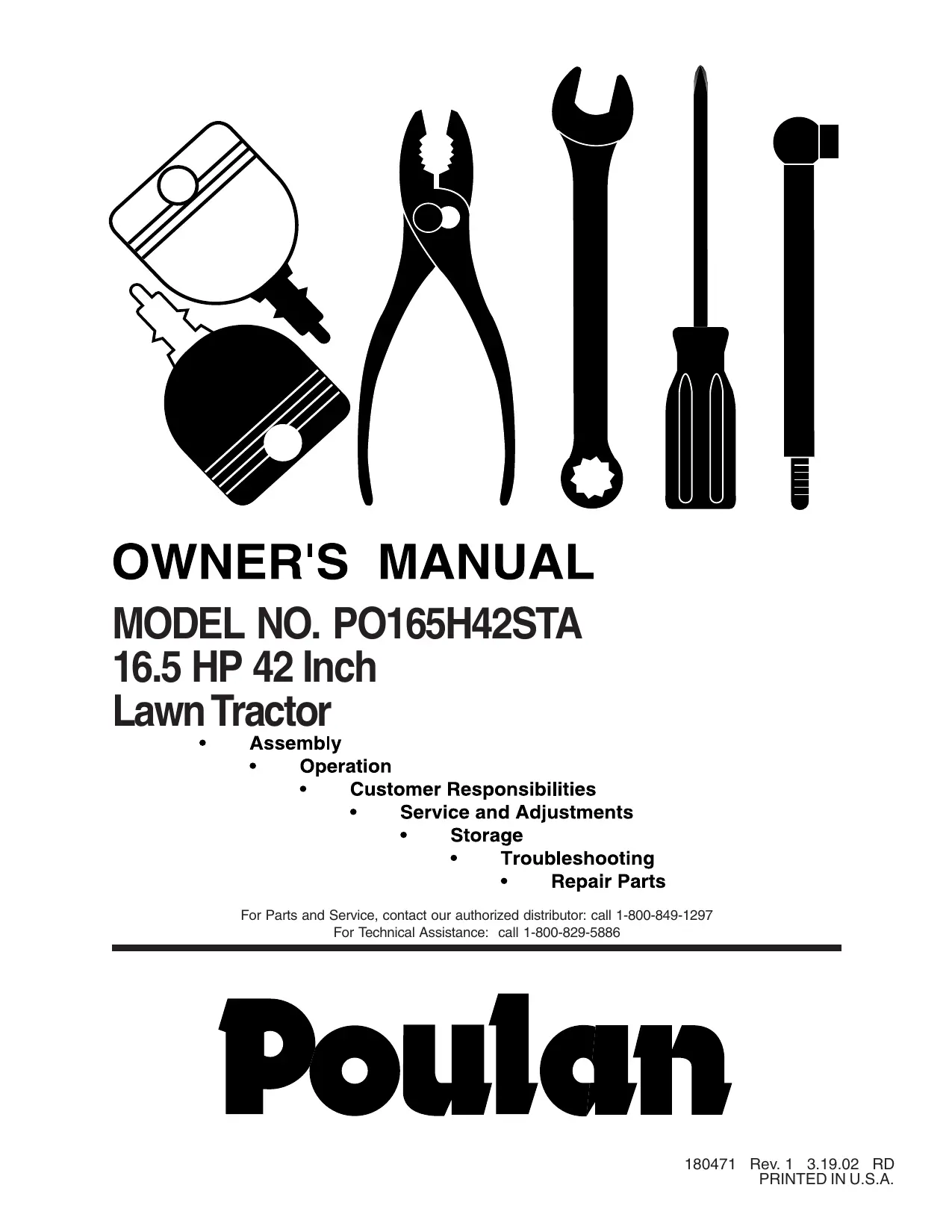 PO165H42STA - Tracteur de pelouse POULAN - Notice d'utilisation et mode d'emploi gratuit
