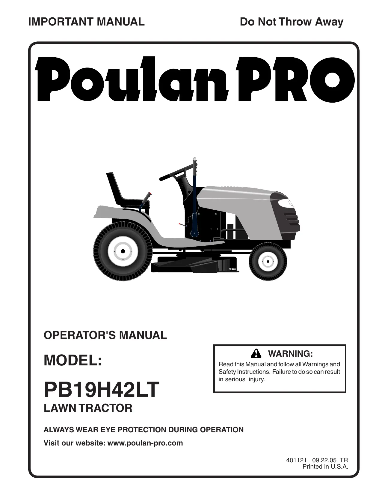 PRO PB19H42LT - Tracteur tondeuse POULAN - Notice d'utilisation et mode d'emploi gratuit