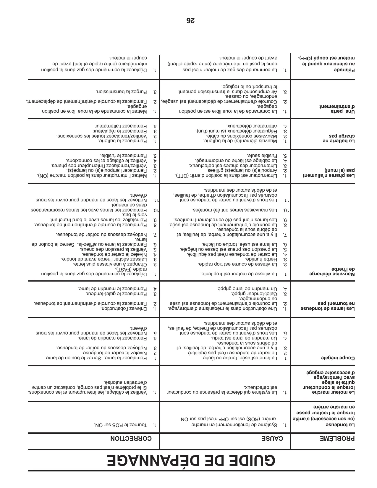 | Entretien et nettoyage | Nettoyage du plateau de coupe, vérification de l'huile, affûtage des lames |