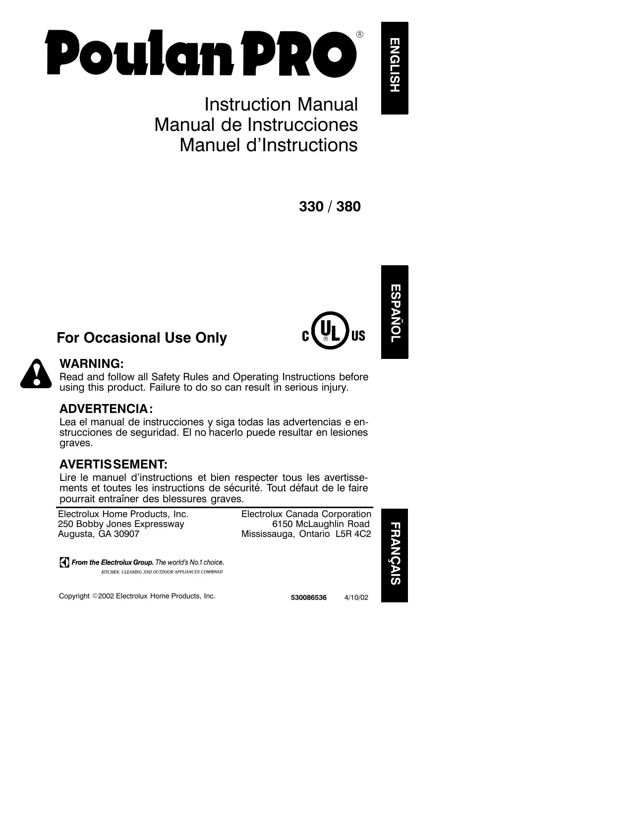 Retrouvez gratuitement la notice de l'appareil 380 POULAN au format PDF.