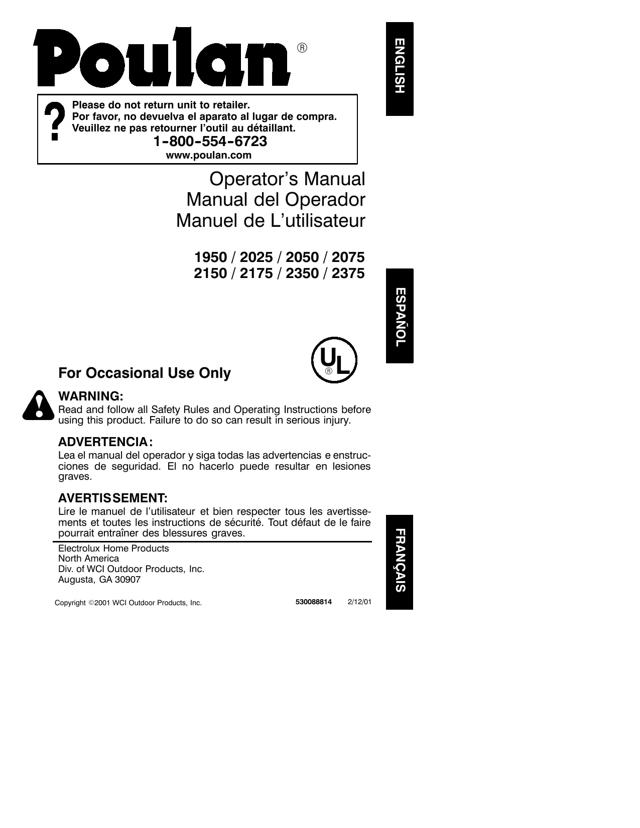 Retrouvez gratuitement la notice de l'appareil 2025 POULAN au format PDF.