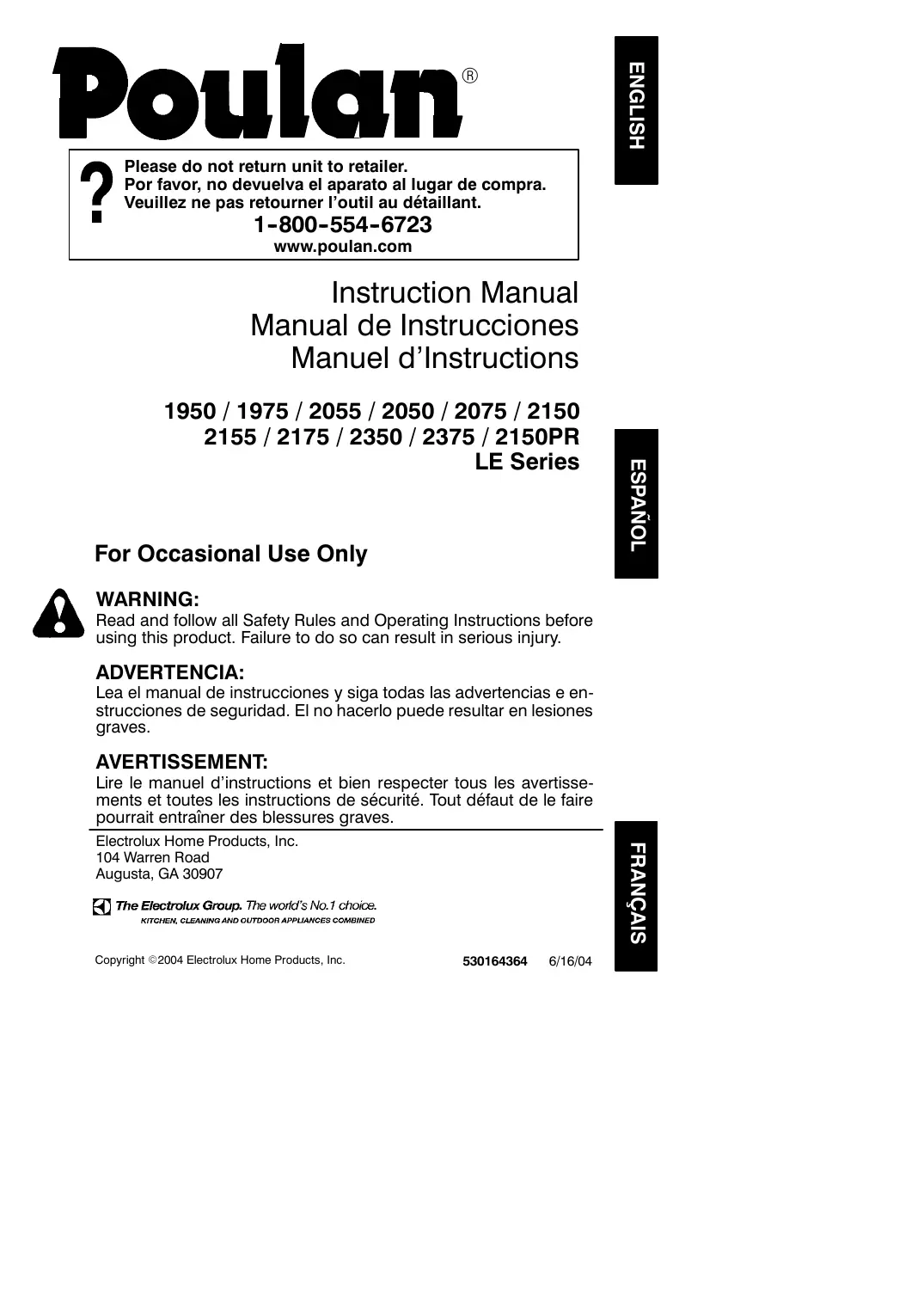 Retrouvez gratuitement la notice de l'appareil 2350 POULAN au format PDF.