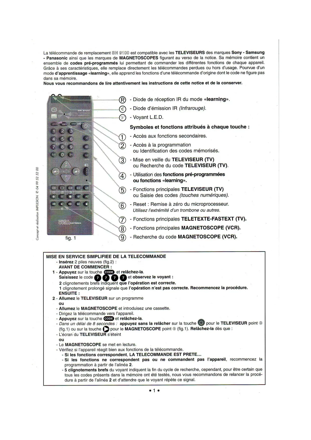 SN-9100 - Télécommande VISA - Notice d'utilisation et mode d'emploi gratuit