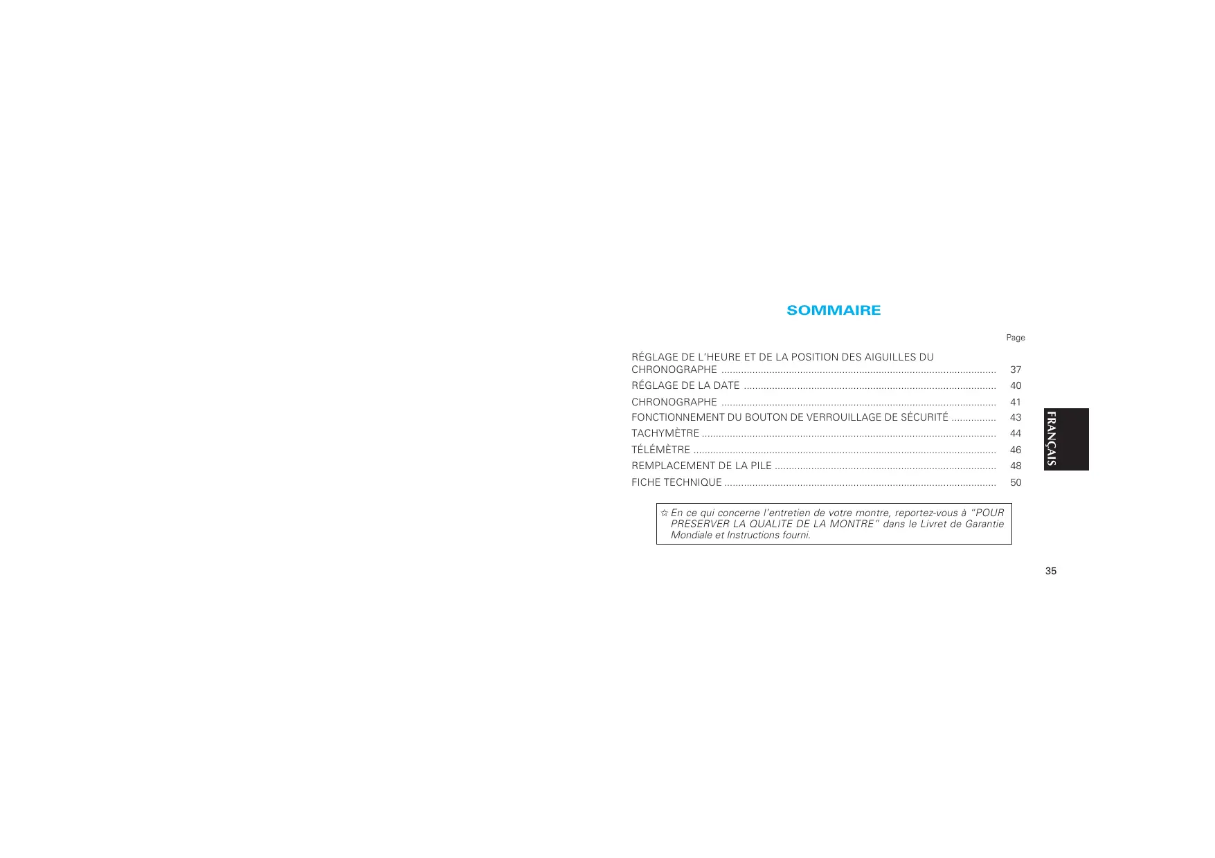 La SEIKO 7T94 est généralement étanche jusqu'à 100 mètres. Évitez de manipuler les boutons ou la couronne sous l'eau.