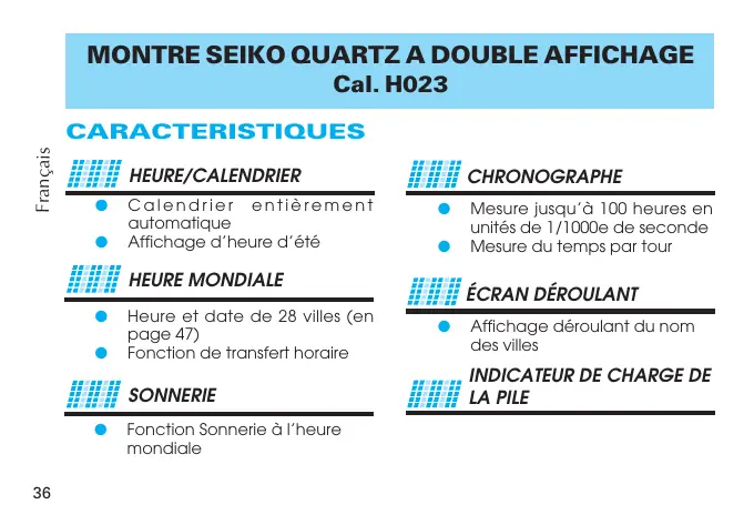 H023 DUO DISPLAY - Montre SEIKO - Notice d'utilisation et mode d'emploi gratuit