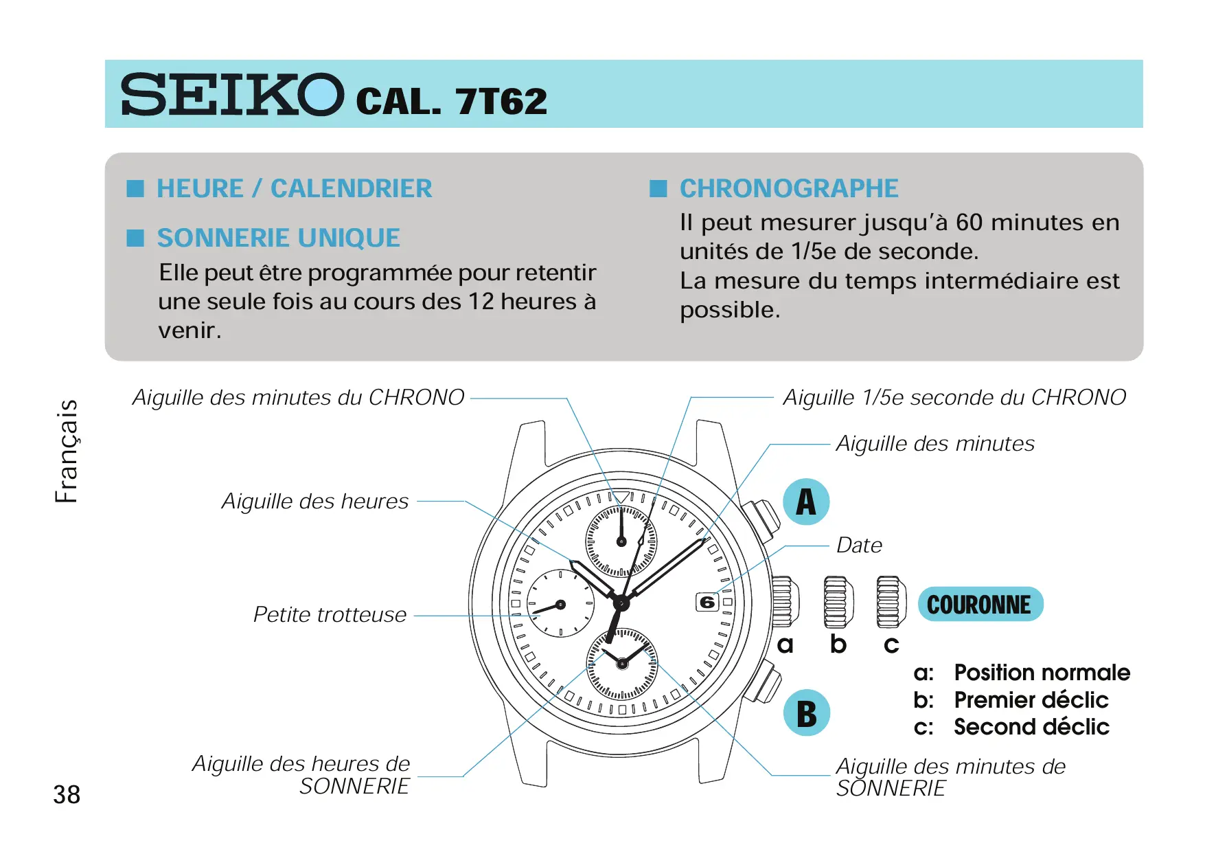 MODE D'EMPLOI VELATURA 7T62 SEIKO