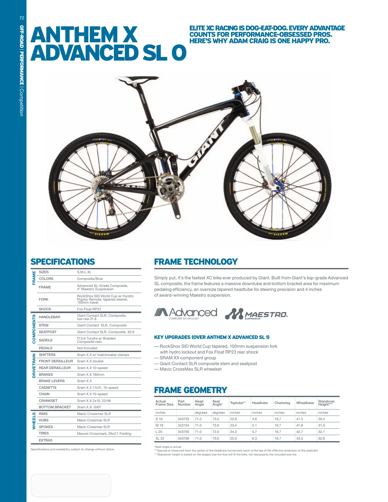 ANTHEM X ADVANCED SL 0 - Vélo de route GIANT - Notice d'utilisation et mode d'emploi gratuit