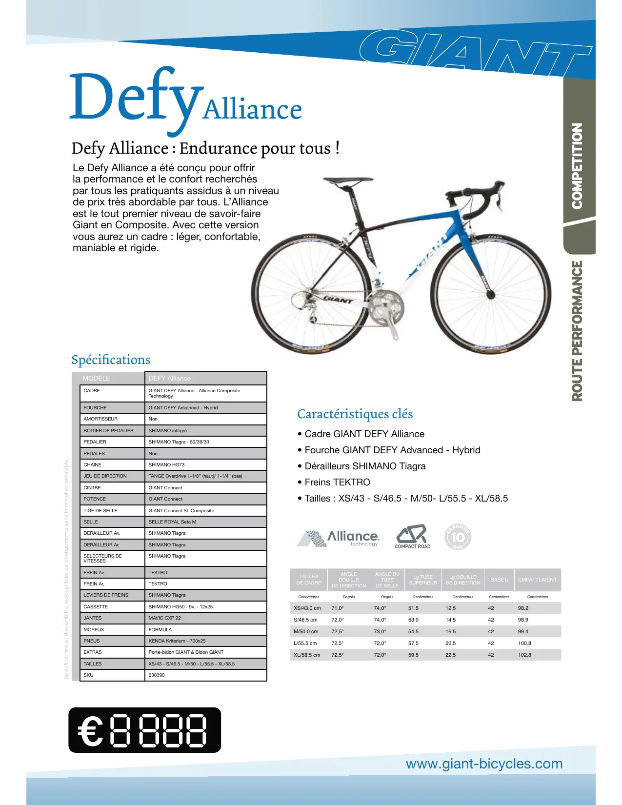 DEFY ALLIANCE - Vélo de route GIANT - Notice d'utilisation et mode d'emploi gratuit