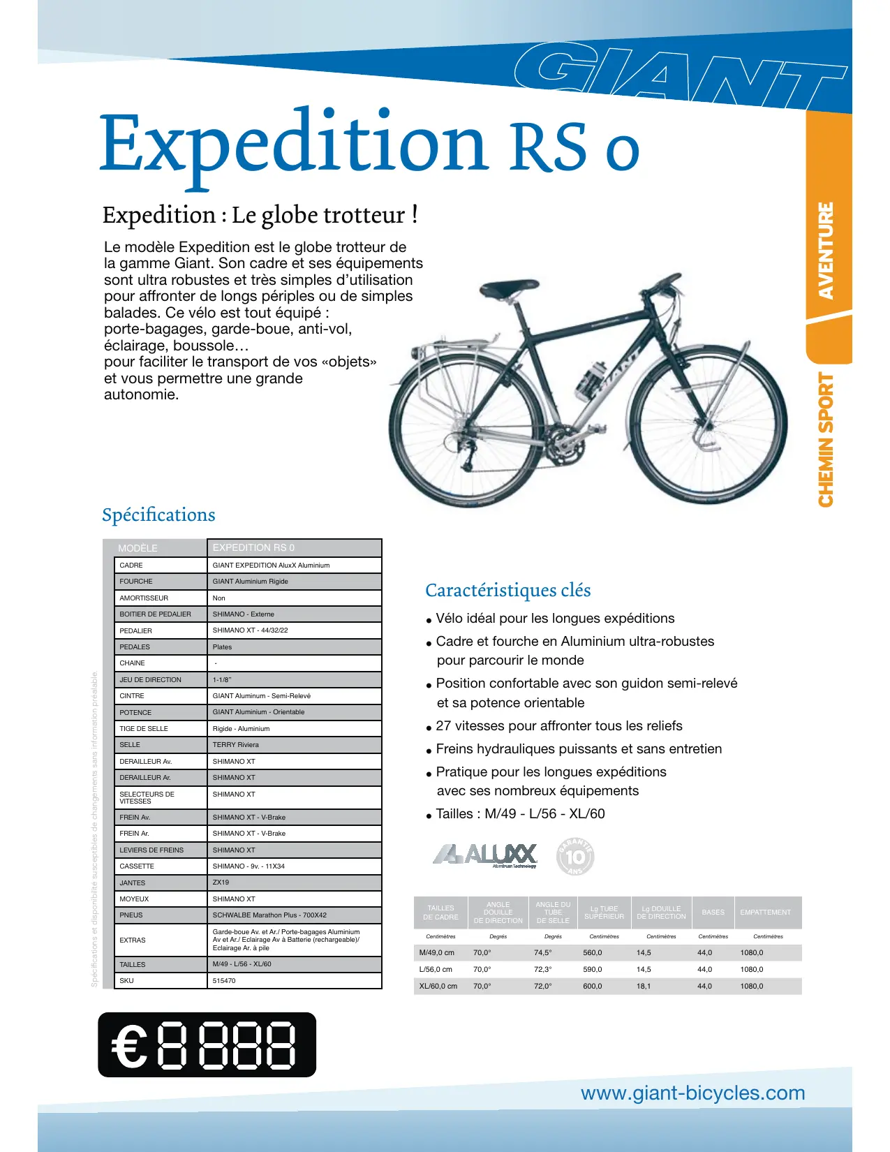 | Type de produit | Vélo de randonnée GIANT EXPEDITION RS 0 |
