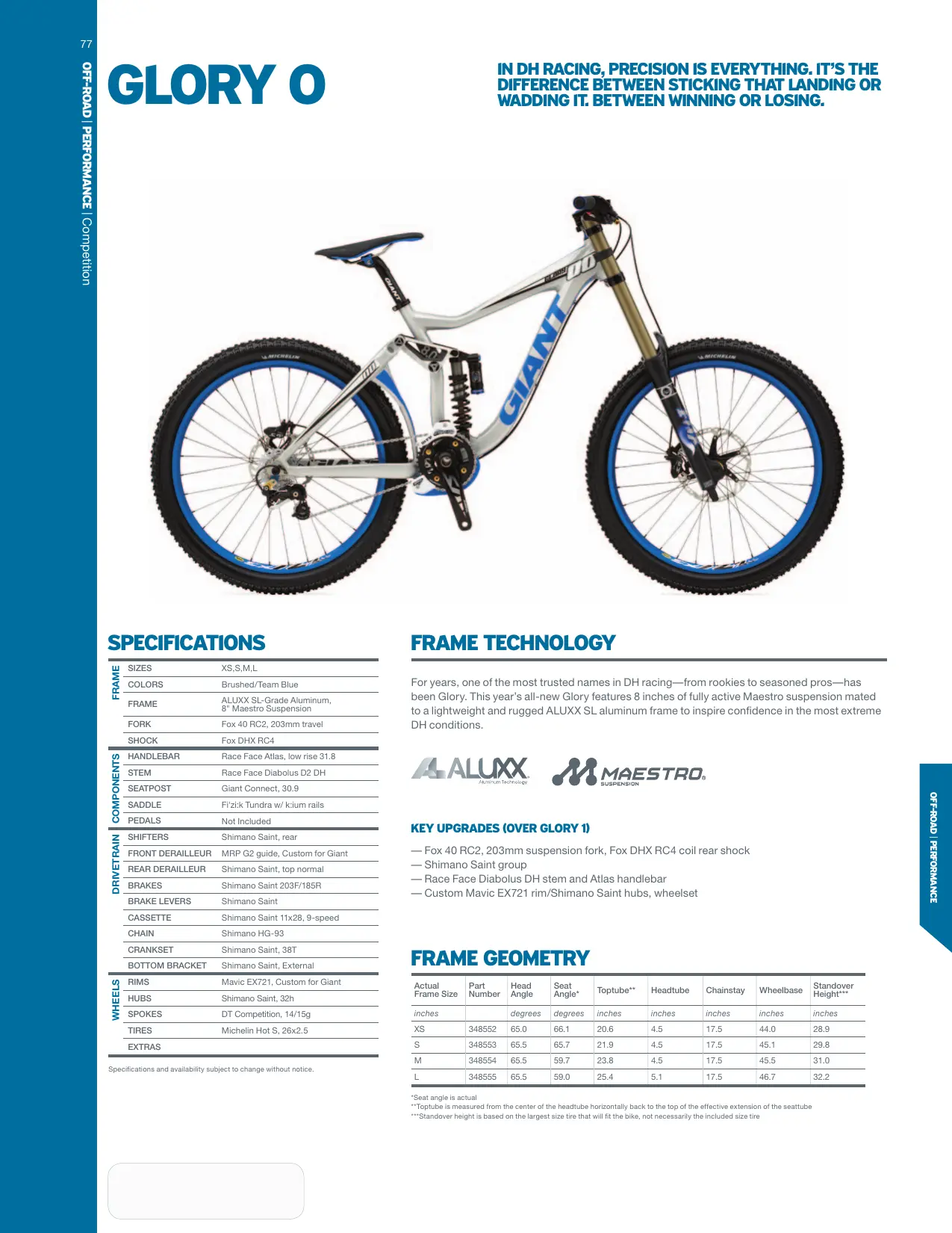 GLORY 0 - Vélo GIANT - Notice d'utilisation et mode d'emploi gratuit