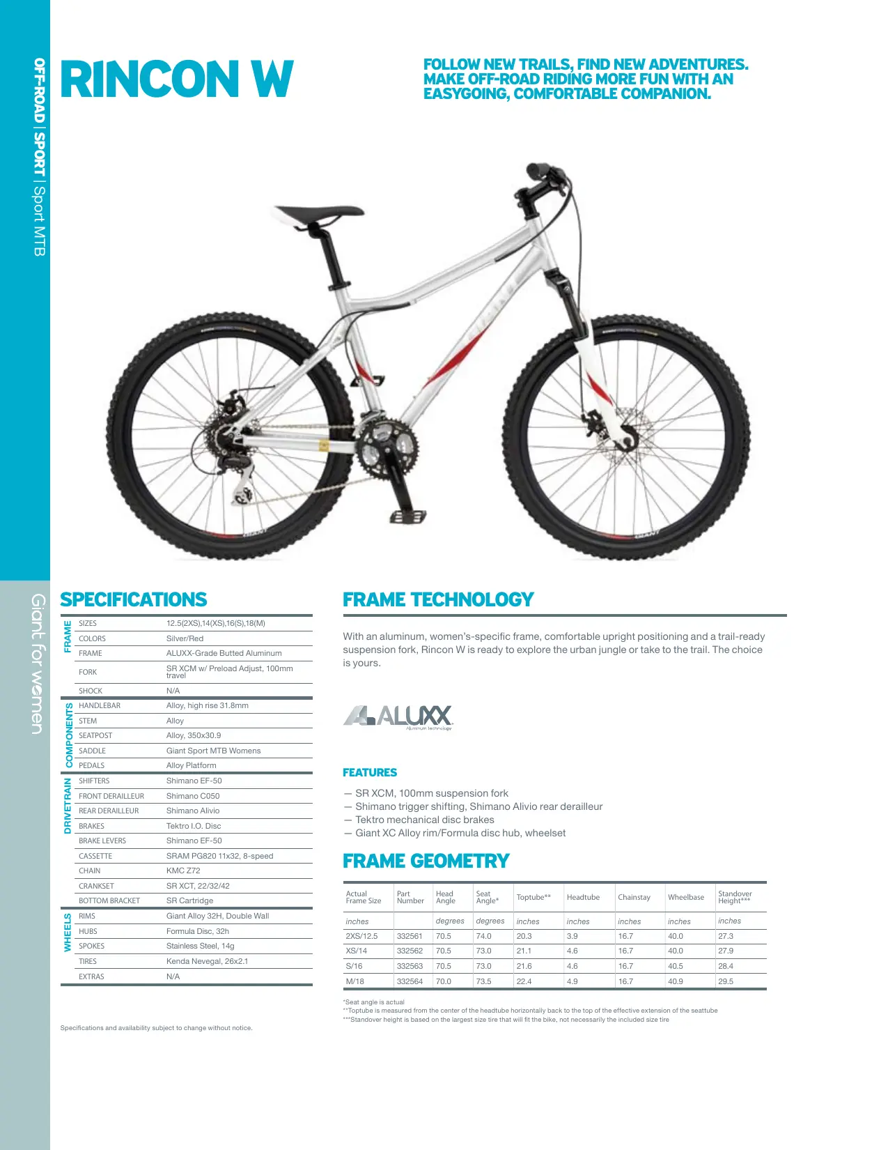 Téléchargez la notice de votre Vélo au format PDF gratuitement ! Retrouvez votre notice RINCON W - GIANT et reprennez votre appareil électronique en main. Sur cette page sont publiés tous les documents nécessaires à l'utilisation de votre appareil RINCON W de la marque GIANT.