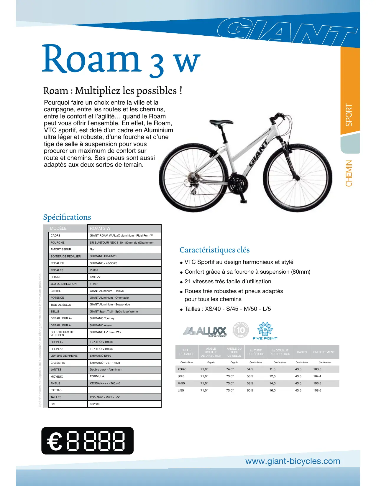 ROAM 3 W - Vélo de montagne GIANT - Notice d'utilisation et mode d'emploi gratuit