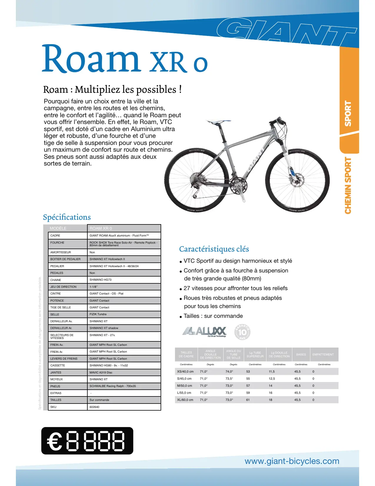 ROAM XR0 - Vélo électrique GIANT - Notice d'utilisation et mode d'emploi gratuit