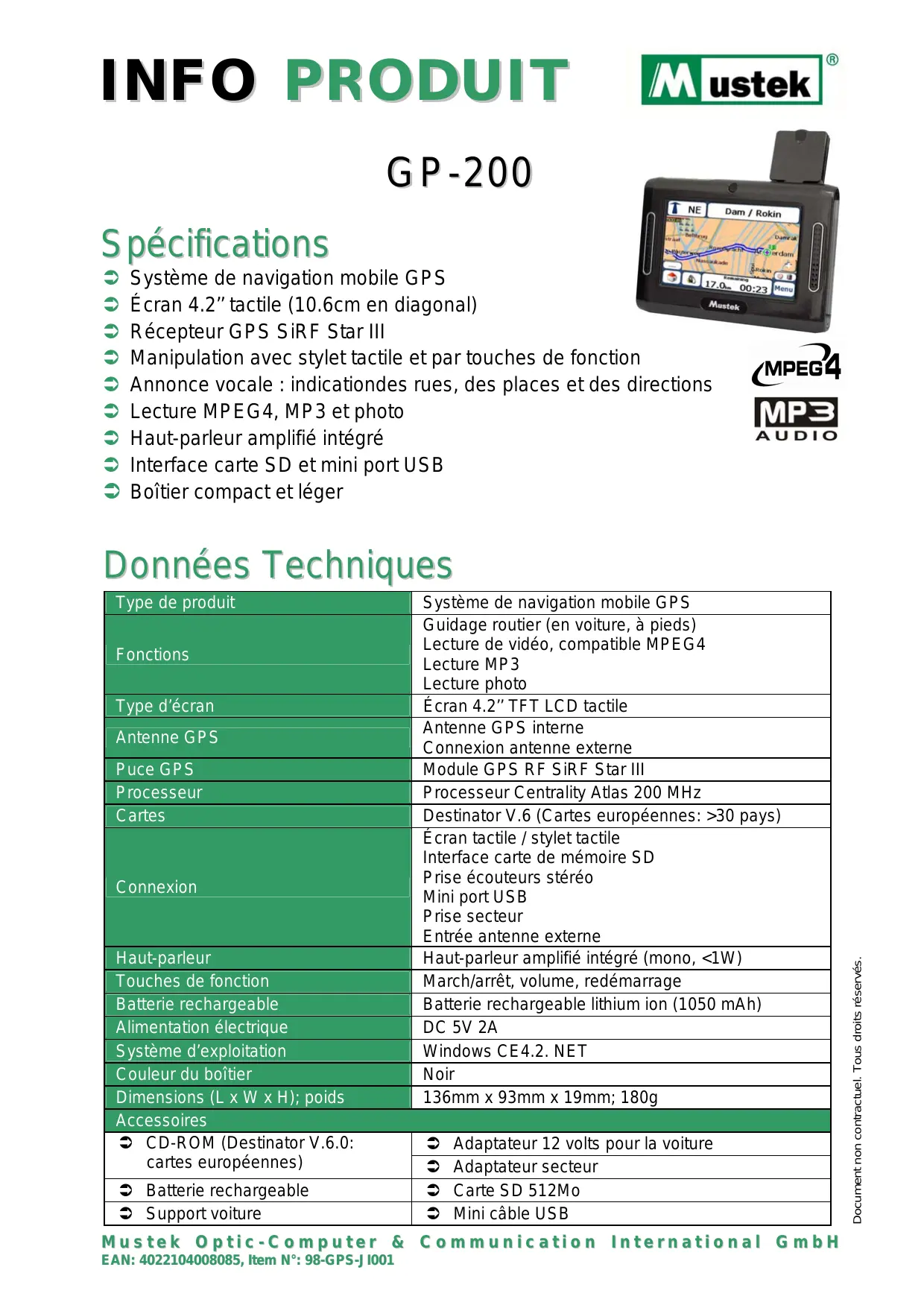 GP-200 - Système de navigation GPS MUSTEK - Notice d'utilisation et mode d'emploi gratuit