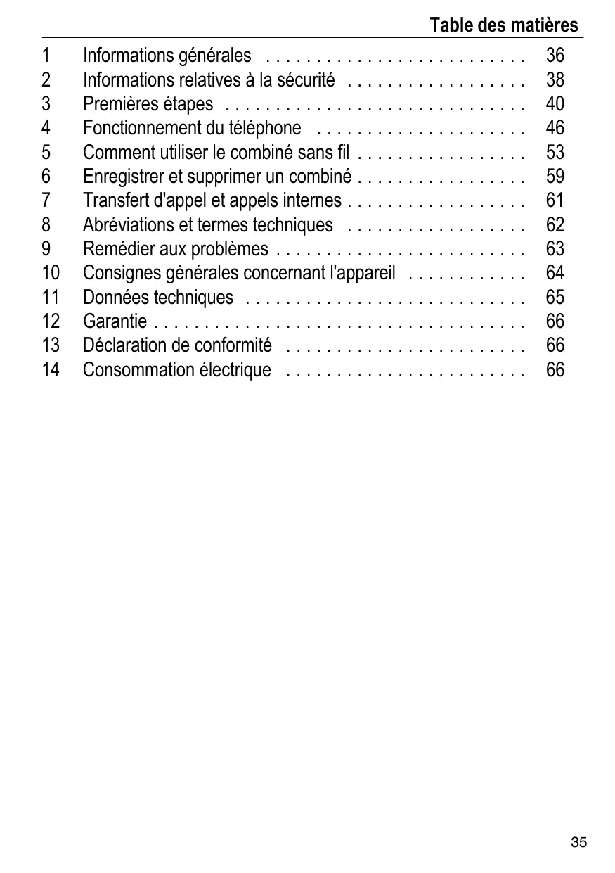 Informations générales 1 Informations générales Avant la première utilisation Nous vous remercions d'avoir acheté ce nouveau téléphone numérique avec base filaire et combiné sans fil. Usage prévu : Cet appareil est prévu pour être raccordé en intérieur à une ligne téléphonique analogique. Cet appareil est fabriqué en conformité avec la norme DECT (Digital Enhanced Cordless Telecommunications) (norme de téléphonie numérique sans fil optimisée). La technologie DECT se caractérise par une protection haute sécurité contre les interceptions et une qualité de transmission numérique supérieure. Ce téléphone a été conçu pour une vaste gamme d'applications. Il peut être utilisé par exemple à l'intérieur d'un réseau de 5 combinés. L'identification de l'appelant est un service de votre opérateur. Après vous y être abonné, votre téléphone affichera le numéro de l'appelant sur l'écran. Important Afin de pouvoir utiliser la fonction «Identification de l'appelant» (affichage de son numéro), ce service doit être activé sur votre ligne téléphonique. Normalement vous avez besoin de souscrire à un abonnement distinct auprès de votre opérateur pour activer cette fonction. Si vous ne disposez pas de celle-ci, les numéros entrants ne seront PAS affichés sur l'écran de votre téléphone. Attention : Cet appareil fonctionne seulement avec des piles rechargeables. Si vous insérez des piles non rechargeables dans le combiné et placez celui-ci sur la base, il en sera endommagé et vous ne serez PAS couvert par la garantie. Se connecter au réseau téléphonique analogique public. Les caractéristiques décrites dans ce manuel sont publiées sous réserve de modifications. Le manuel d'utilisation contient toutes les informations dont vous avez besoin pour installer, programmer et faire fonctionner votre appareil. Il contient également des informations et des remarques importantes relatives à votre sécurité qui vous aideront en cas de problèmes. Conservez toujours le manuel près de votre téléphone. Gardez-le à un endroit sûr et transmettez-le à un autre utilisateur si nécessaire.