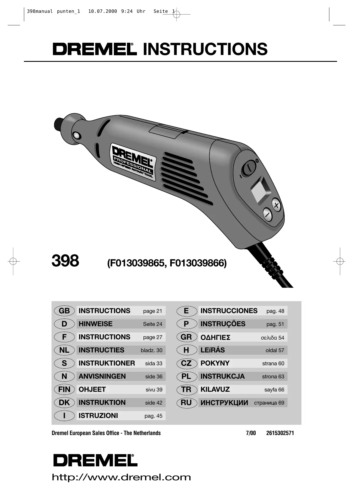 398 HIGH SPEED ROTARY TOOL - Outil rotatif DREMEL - Notice d'utilisation et mode d'emploi gratuit