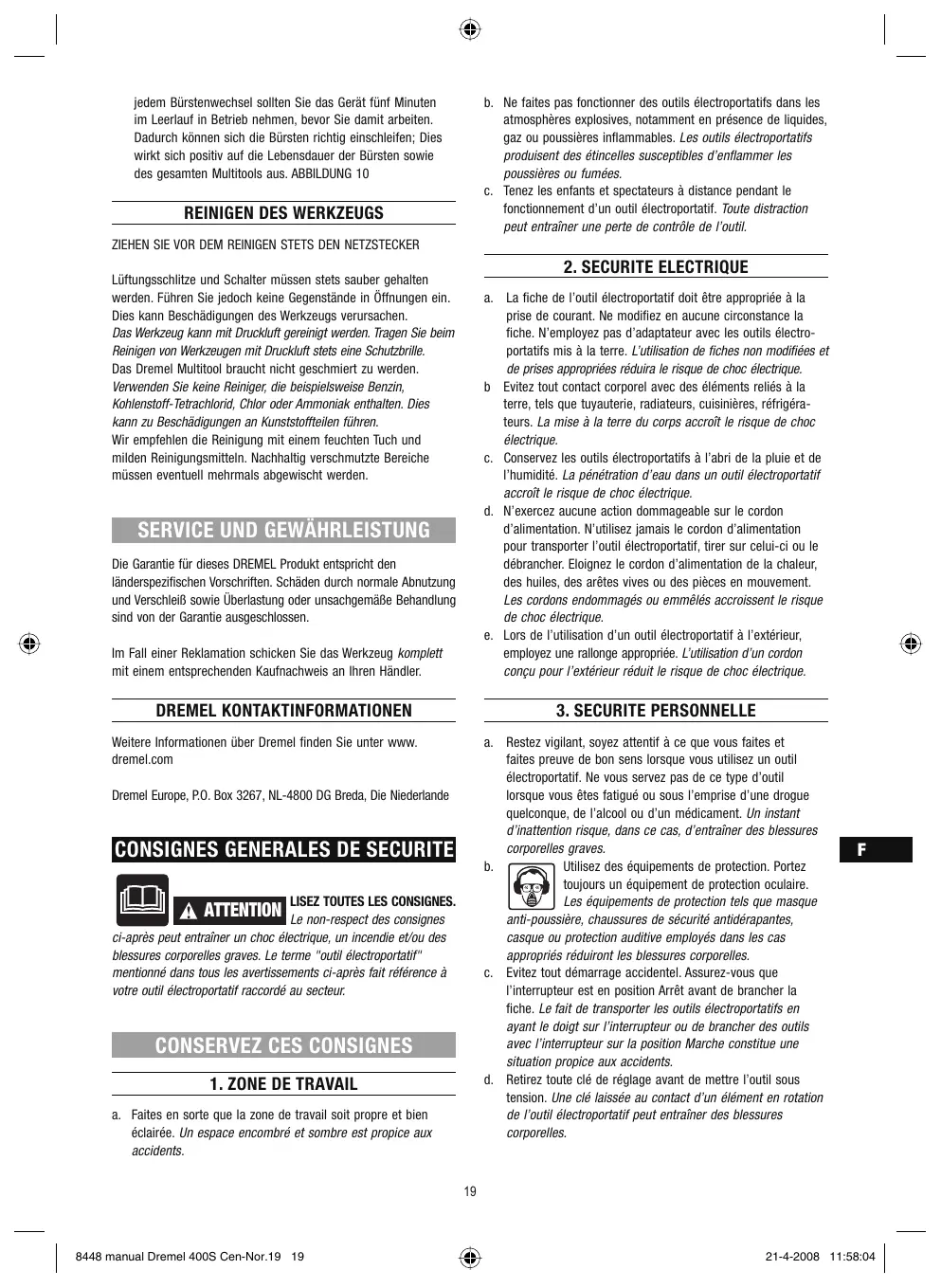 MODE D'EMPLOI 400 SERIES DREMEL