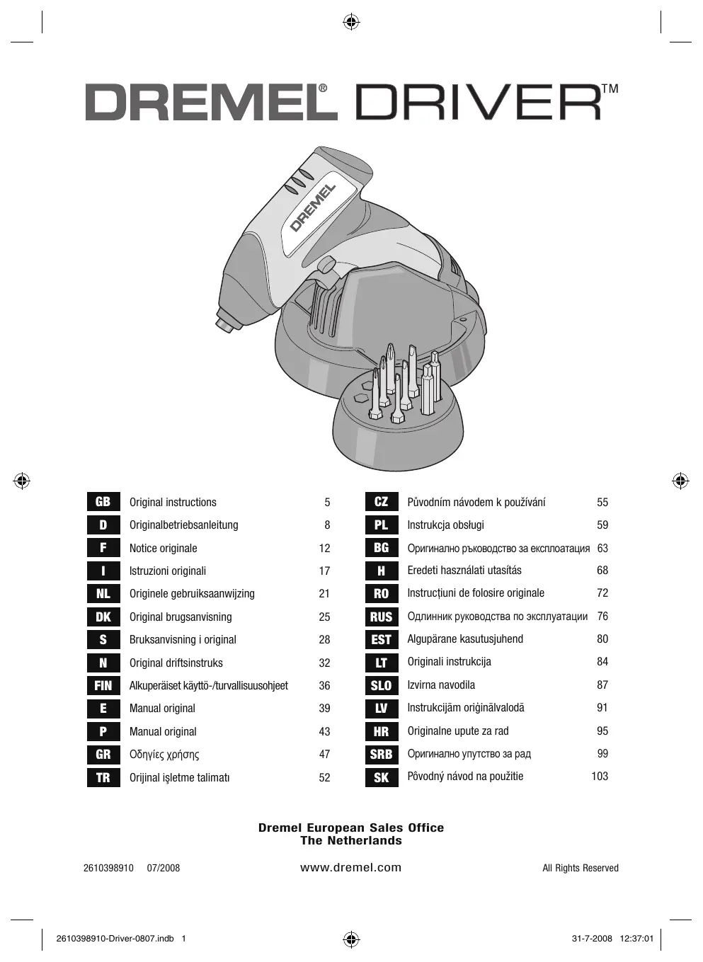 Retrouvez gratuitement la notice de l'appareil DRIVER DREMEL au format PDF.