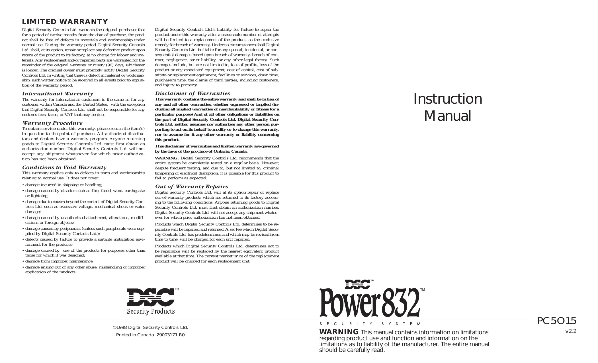 Retrouvez gratuitement la notice de l'appareil PC5015 DSC au format PDF.