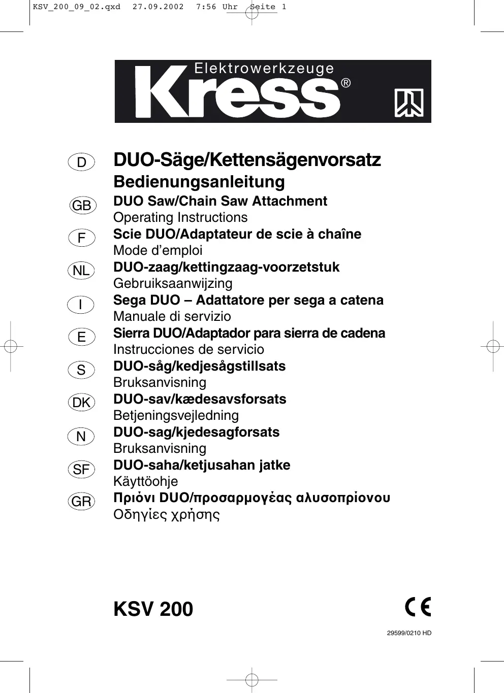 MODE D'EMPLOI KSV 200 KRESS