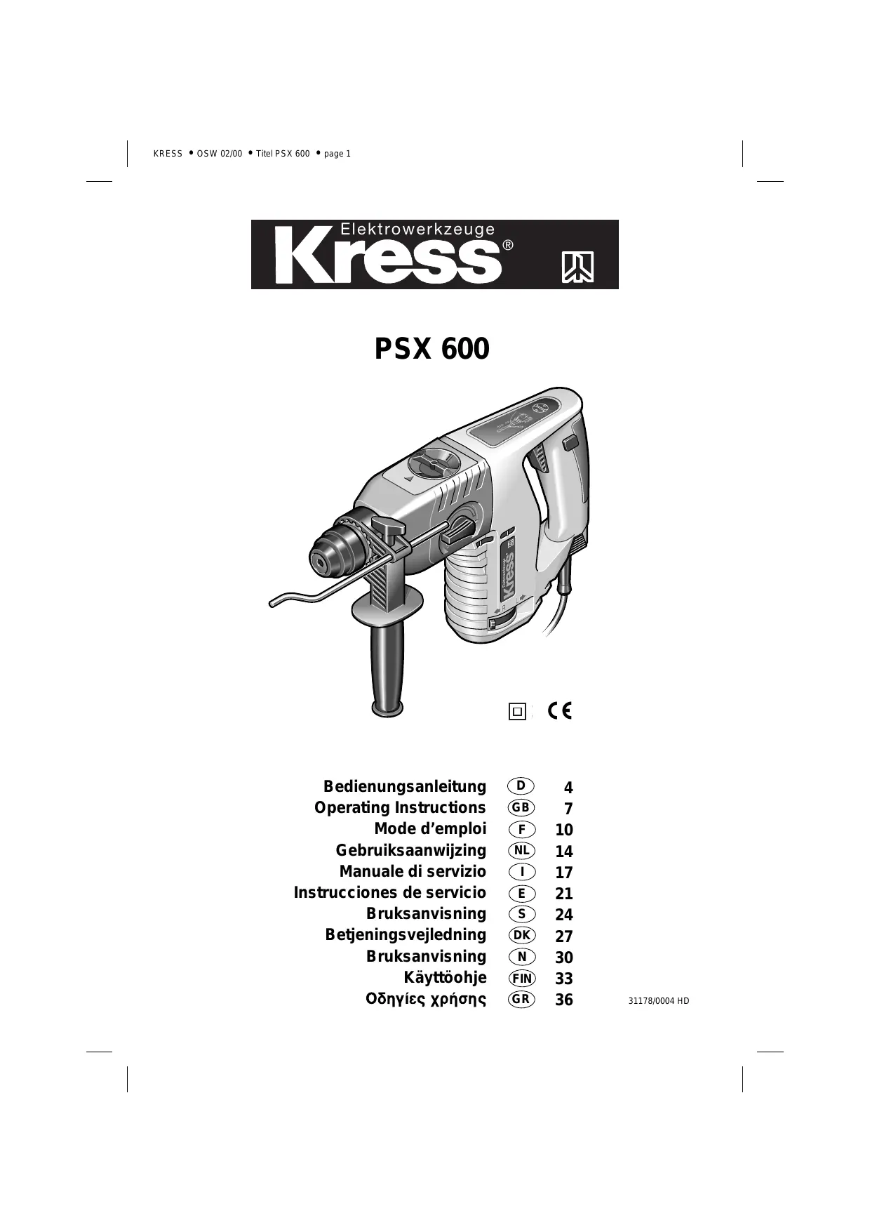 Retrouvez gratuitement la notice de l'appareil PSX 600 KRESS au format PDF.
