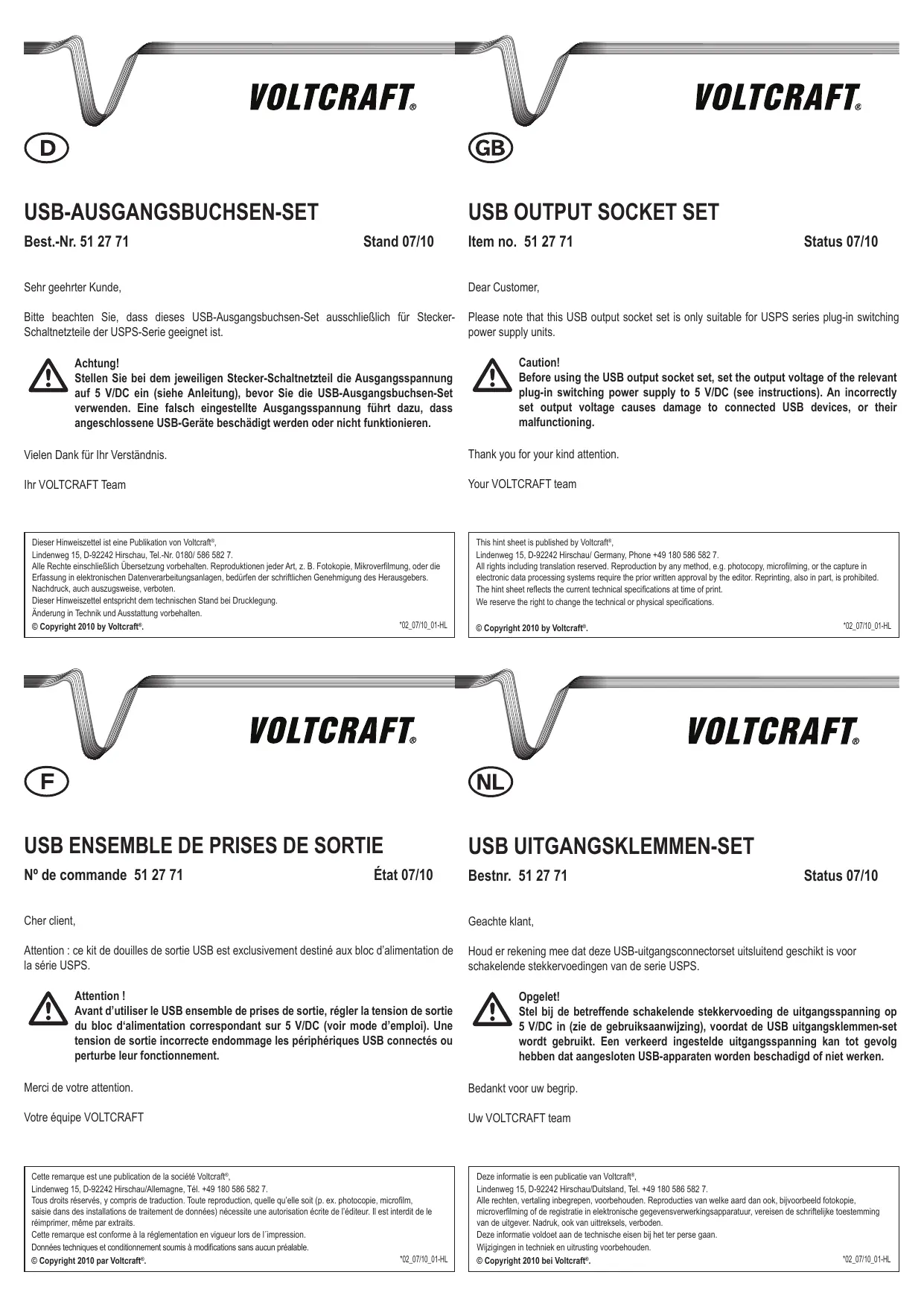 MODE D'EMPLOI USB OUTPUT SOCKET SET VOLTCRAFT