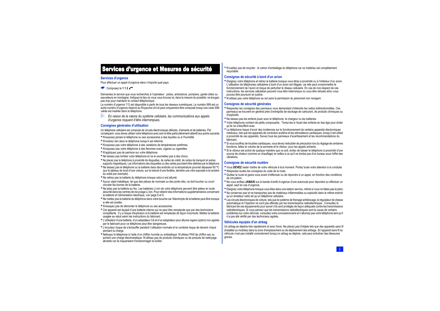 - N’utilisez pas votre téléphone au sol sans la permission du personnel non navigant. Consignes de sécurité générales