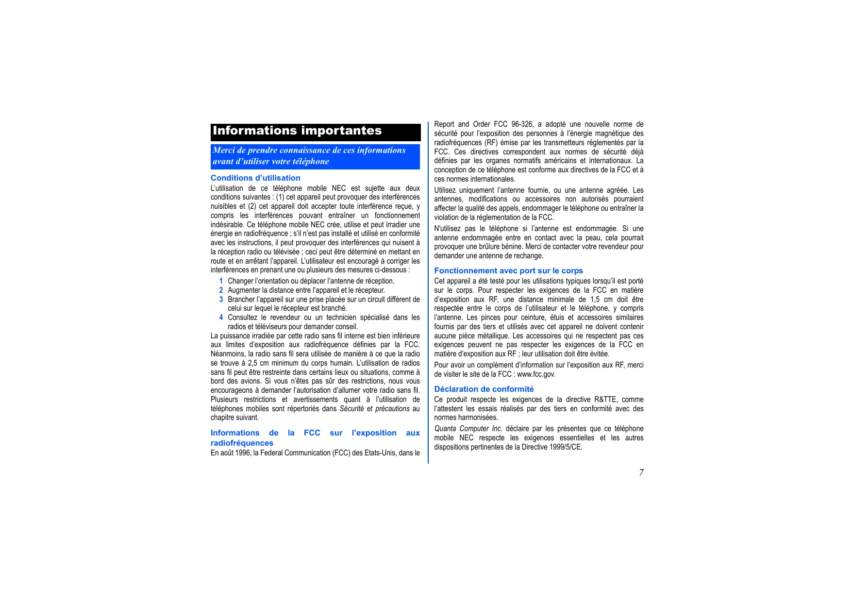 Informations de la FCC sur l'exposition aux radiofréquences 7