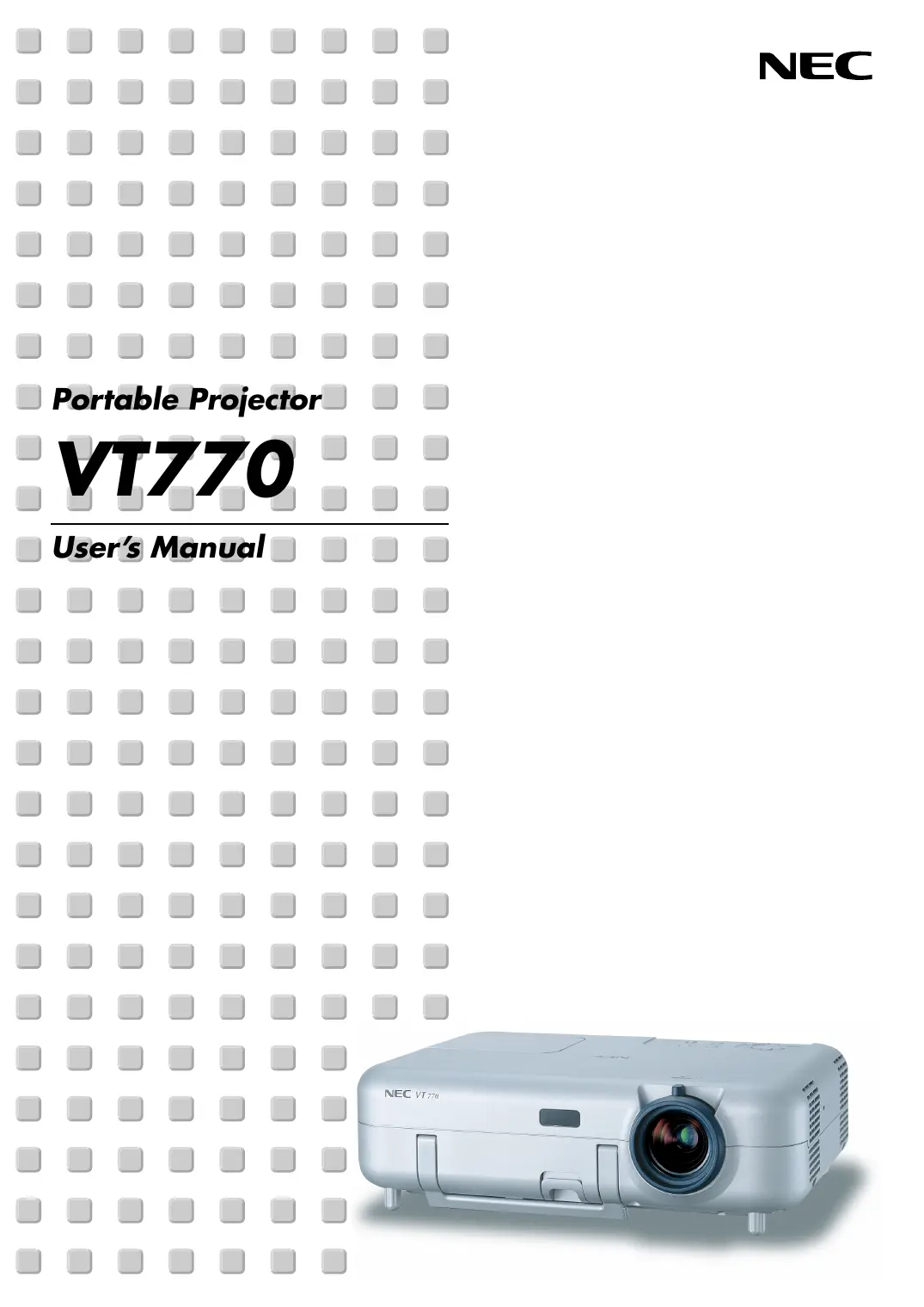 Téléchargez la notice de votre Projecteur au format PDF gratuitement ! Retrouvez votre notice VT770 - NEC et reprennez votre appareil électronique en main. Sur cette page sont publiés tous les documents nécessaires à l'utilisation de votre appareil VT770 de la marque NEC.
