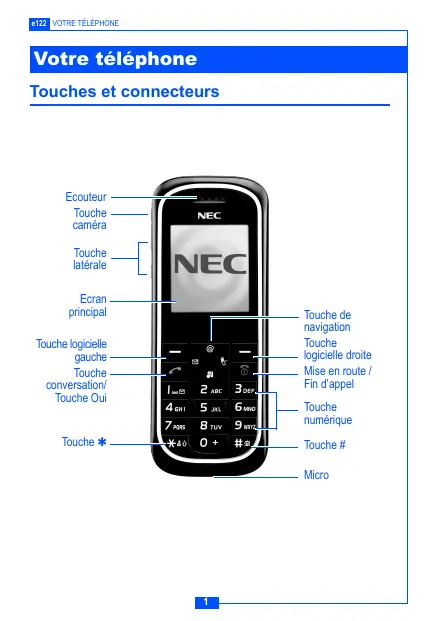 E122 - Téléphone mobile NEC - Notice d'utilisation et mode d'emploi gratuit