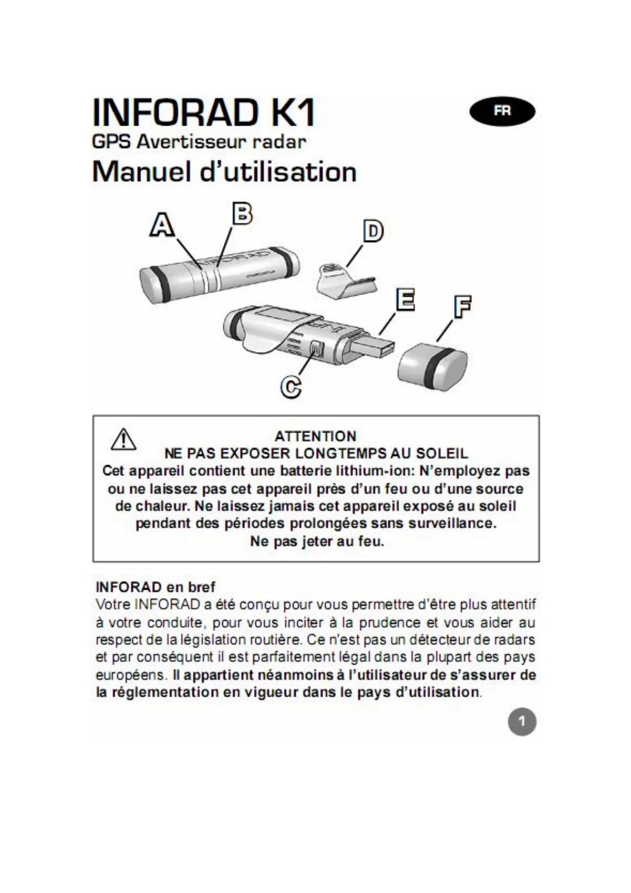 K1 - GPS avertisseur radar INFORAD - Notice d'utilisation et mode d'emploi gratuit