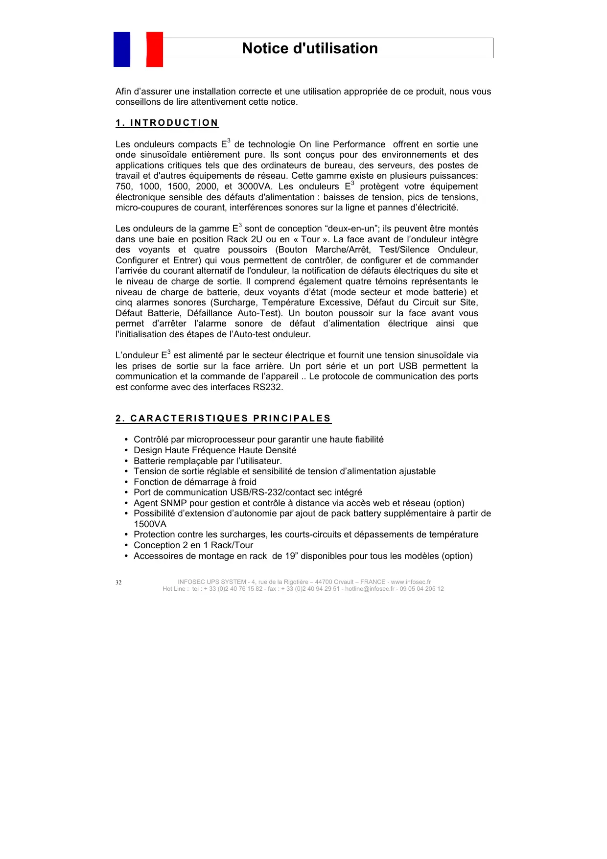 E 3 - Onduleur INFOSEC - Notice d'utilisation et mode d'emploi gratuit