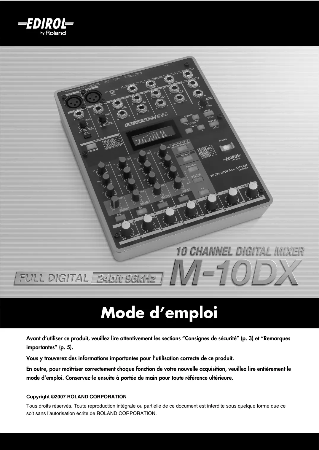 Retrouvez gratuitement la notice de l'appareil M-10DX EDIROL au format PDF.