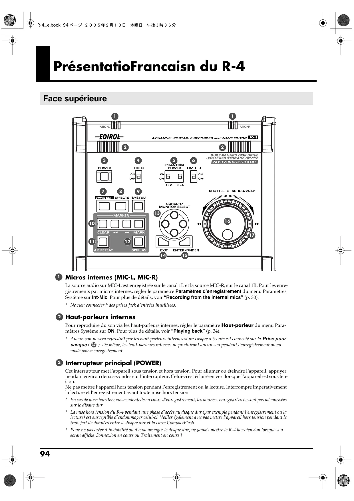 R-4 - Enregistreur audio EDIROL - Notice d'utilisation et mode d'emploi gratuit