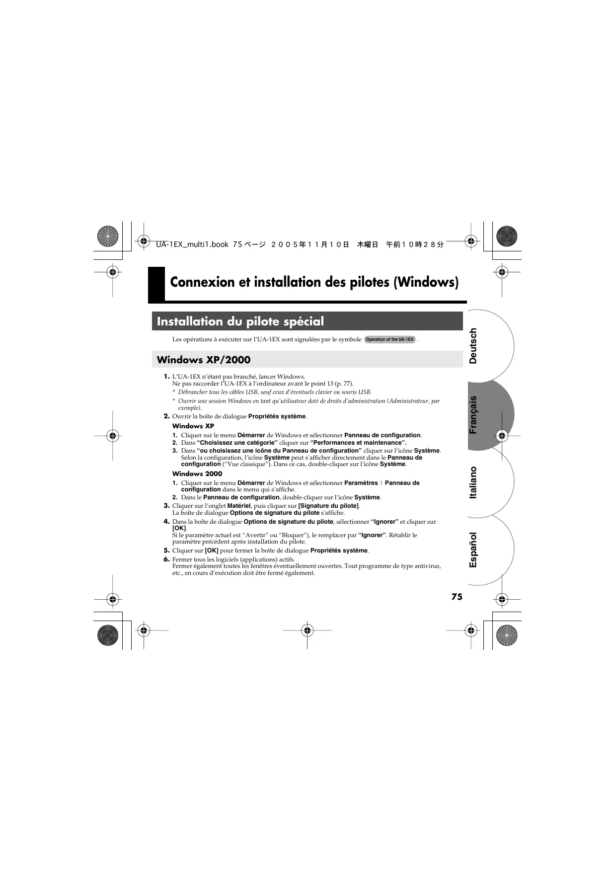 - Cet appareil est équipé d’un circuit de protection. Une fois l’UA-1EX raccordé à l’ordinateur, laisser s’écouler quelques secondes avant de l’utiliser. Deutsch Windows XP