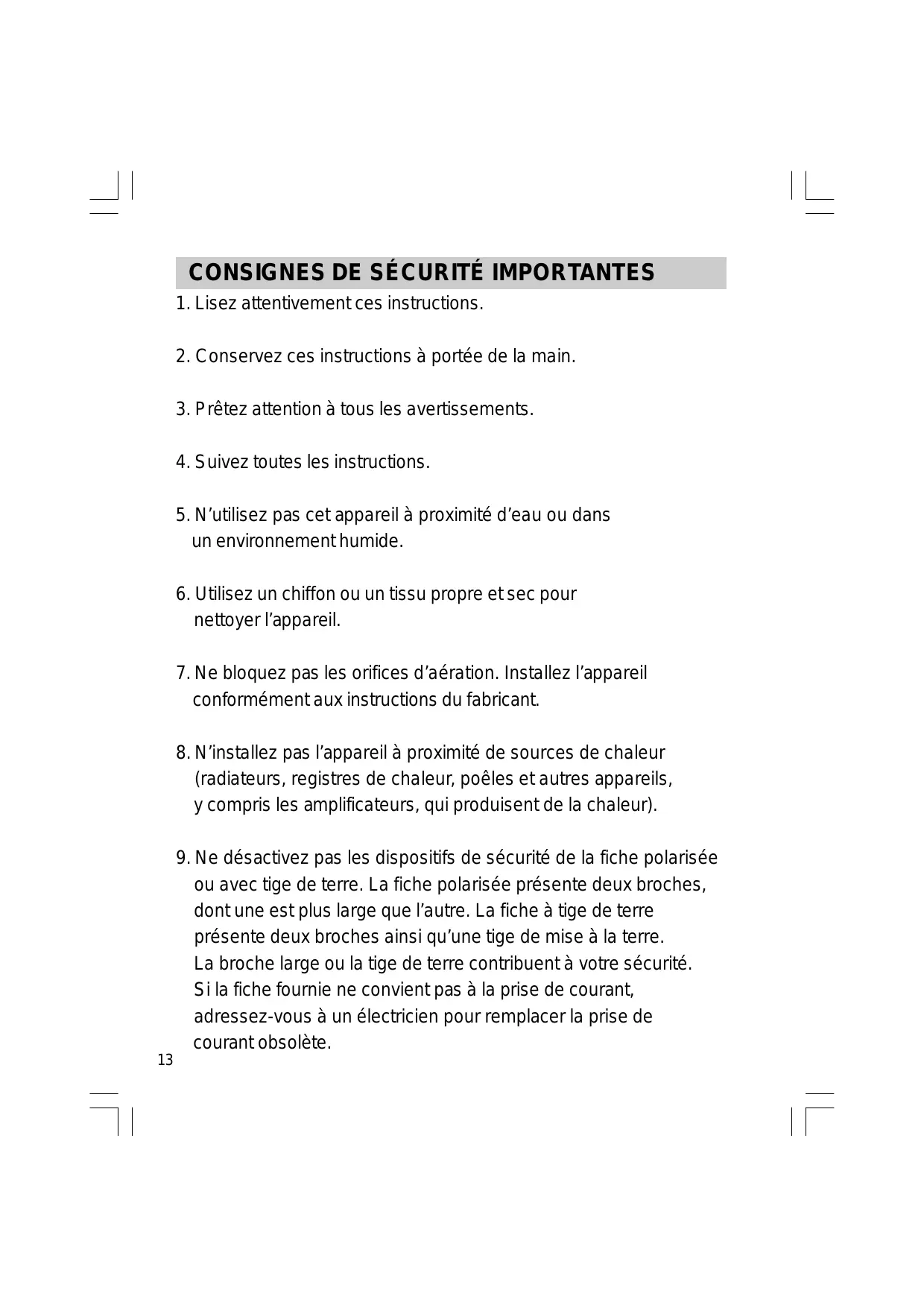 9. Ne désactivez pas les dispositifs de sécurité de la fiche polarisée