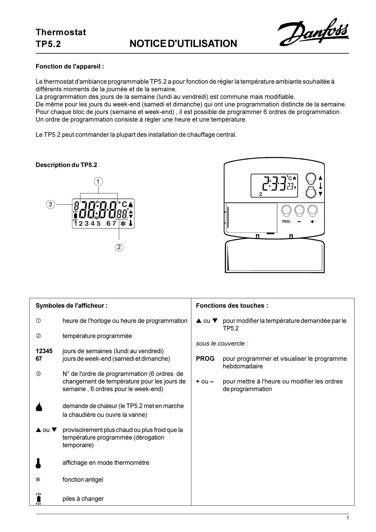 TP5.2 - Thermostat DANFOSS - Notice d'utilisation et mode d'emploi gratuit