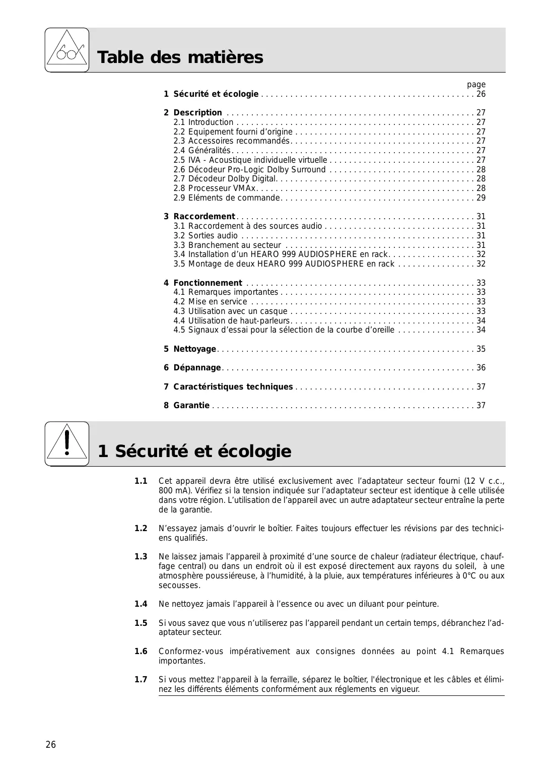 - Table des matières page 1 Sécurité et écologie 2 Description p. 26