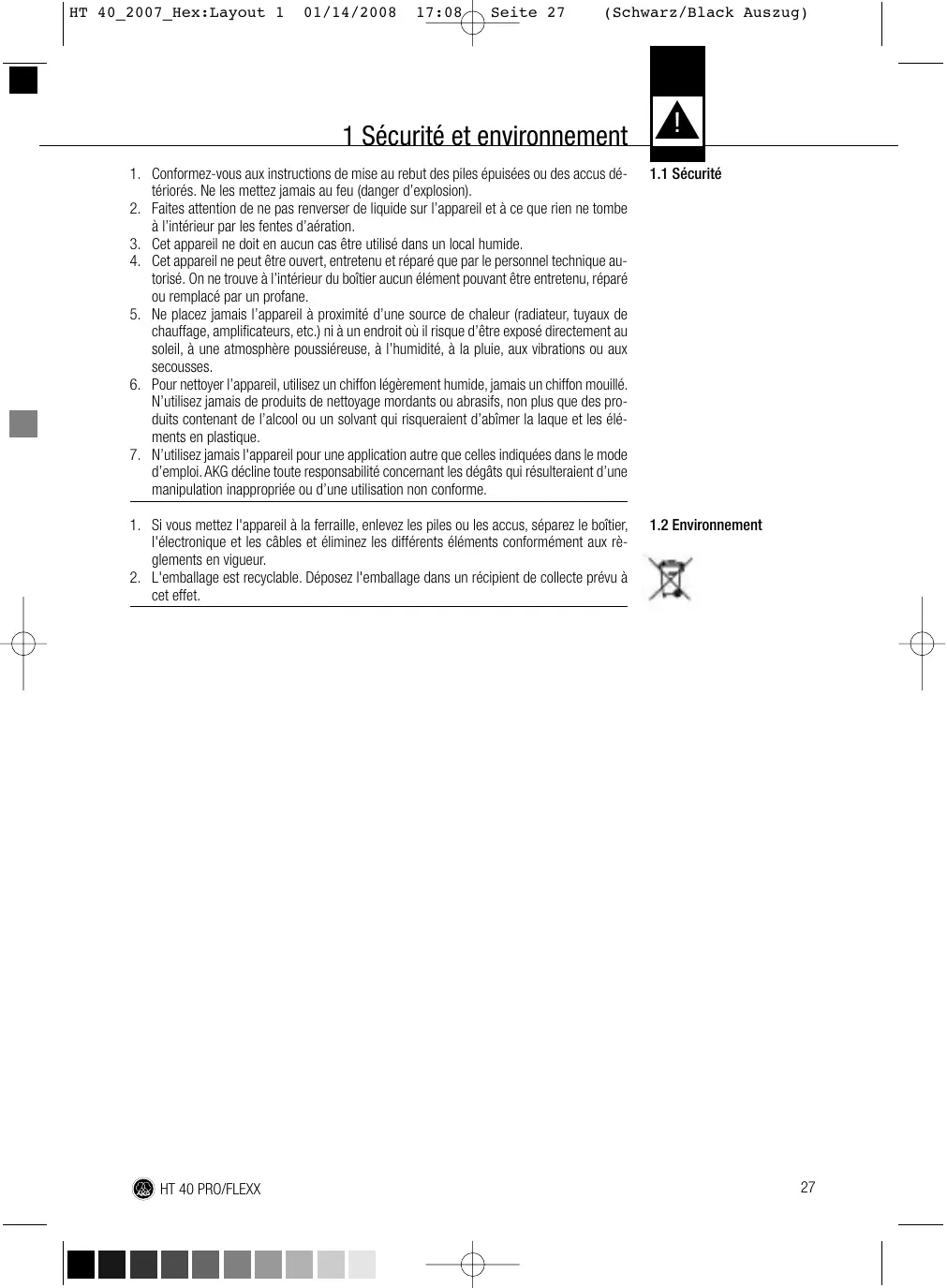 d’emploi. AKG décline toute responsabilité concernant les dégâts qui résulteraient d’une manipulation inappropriée ou d’une utilisation non conforme.