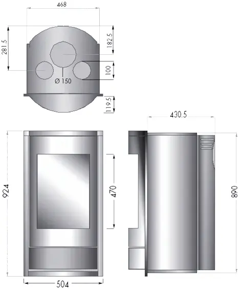 | Hauteur sortie fumée | 281,5 mm |