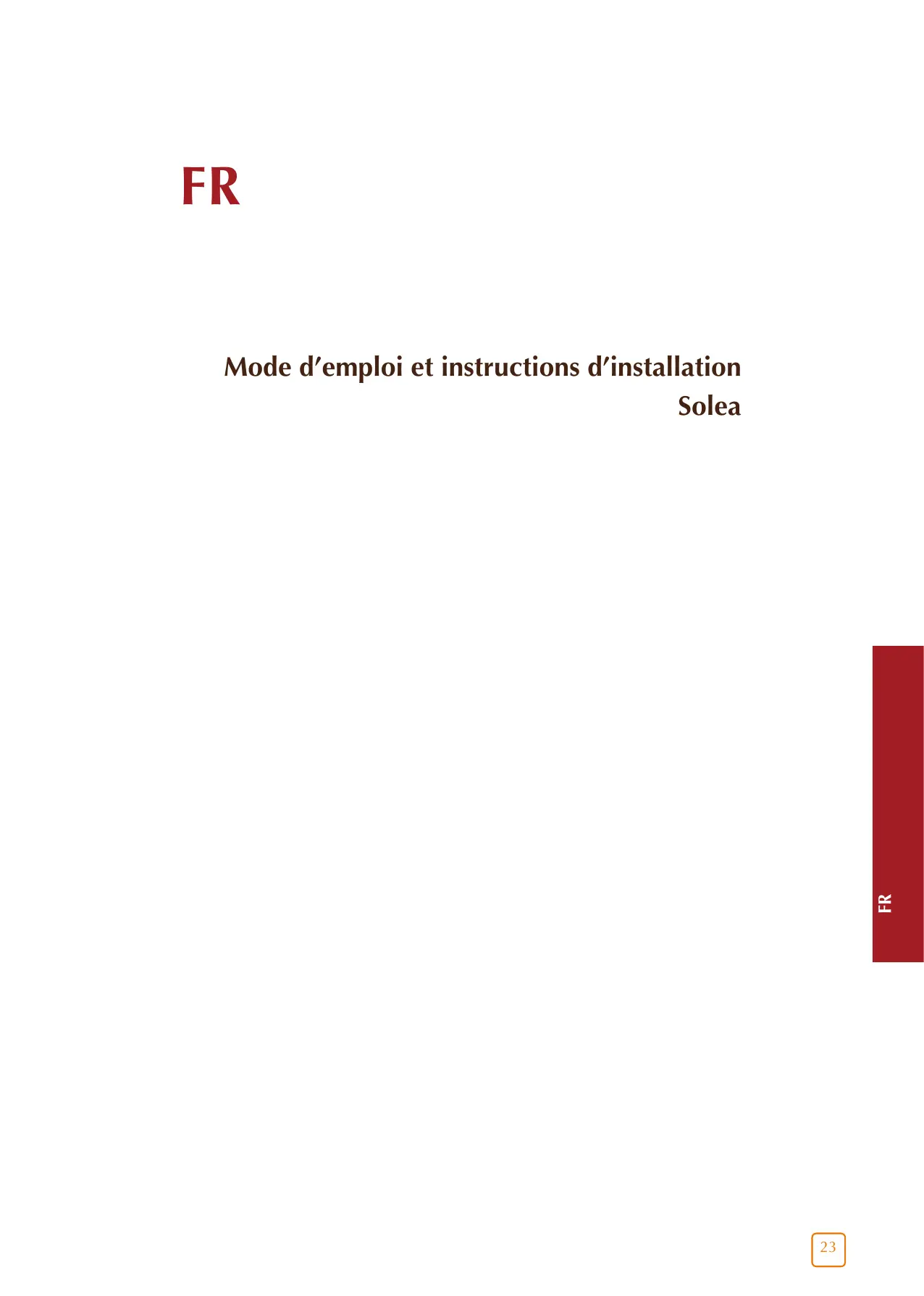 Mode d'emploi et instructions d'installation Solea