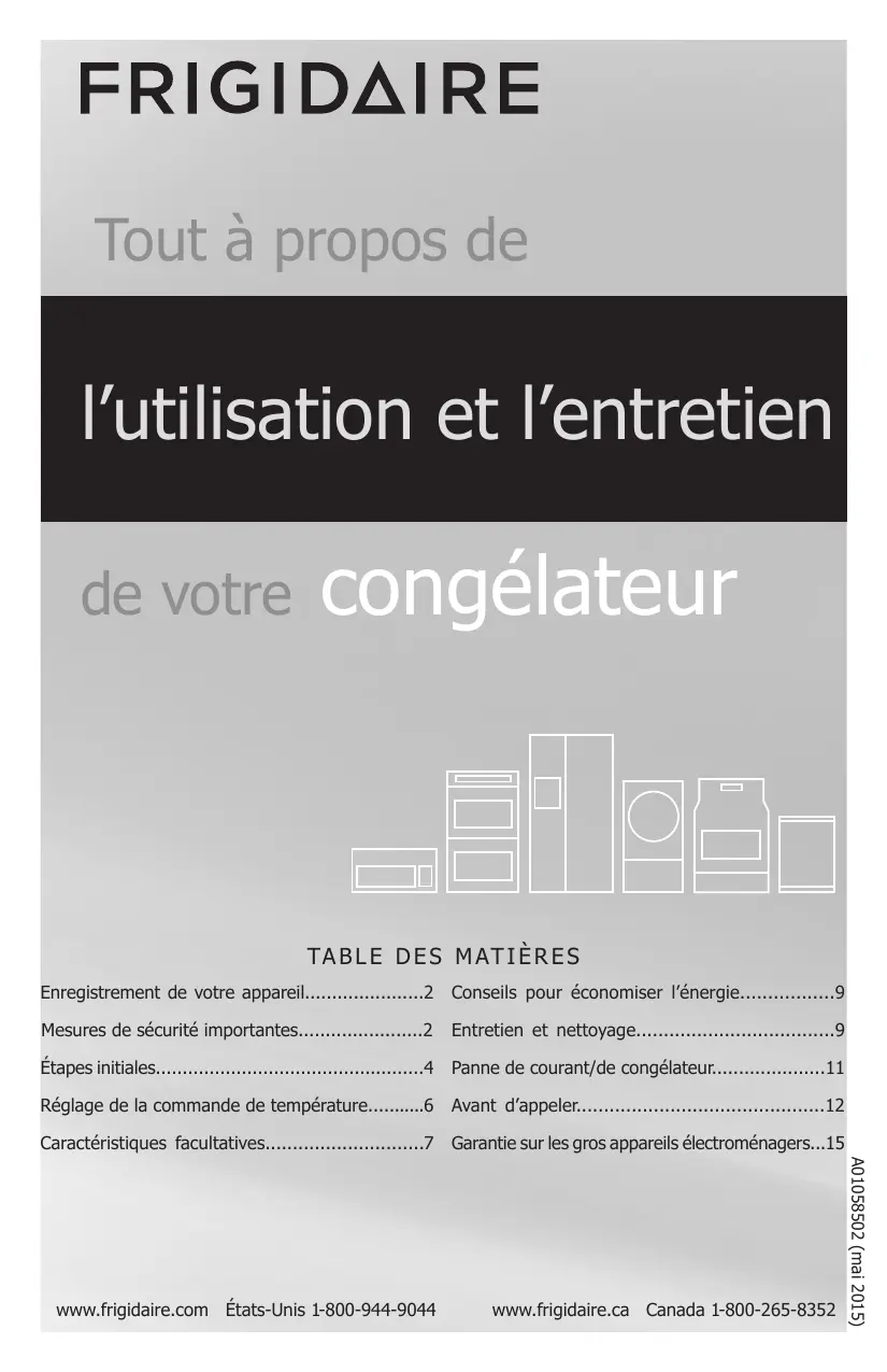 | 1-800-944-9044 (États-Unis) 1-800-265-8352 (Canada) | Visitez notre site Web au www.frigidaire.com. | ||