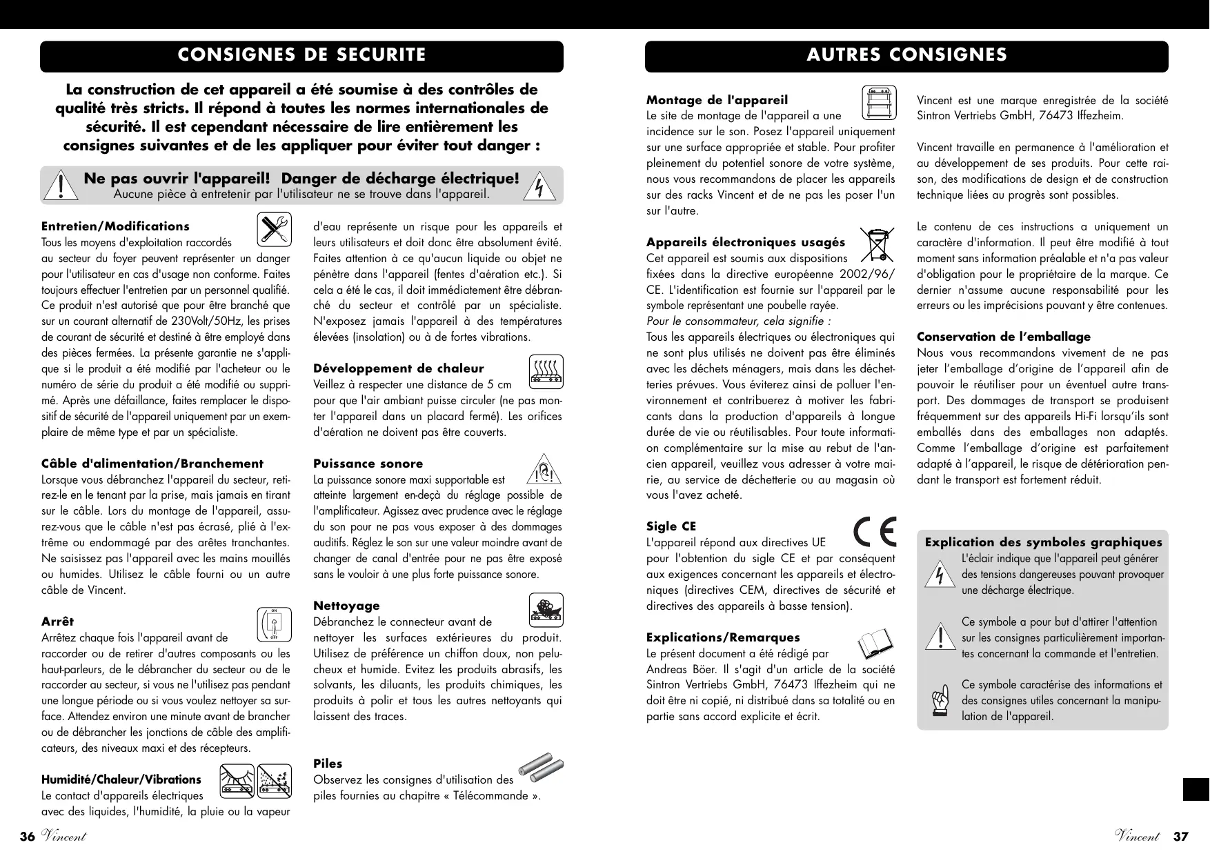 Vincent est une marque enregistrée de la société Sintron Vertriebs GmbH, 76473 Iffezheim.