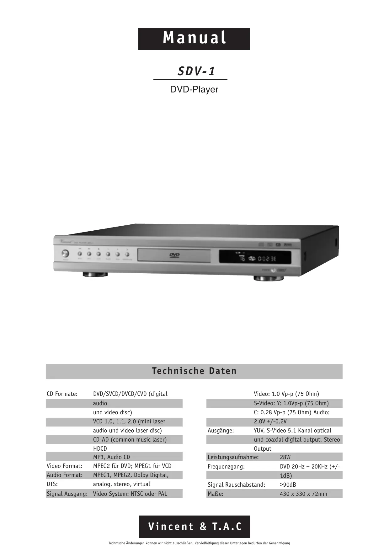 Téléchargez la notice de votre Lecteur dvd au format PDF gratuitement ! Retrouvez votre notice SDV-1 - VINCENT et reprennez votre appareil électronique en main. Sur cette page sont publiés tous les documents nécessaires à l'utilisation de votre appareil SDV-1 de la marque VINCENT.
