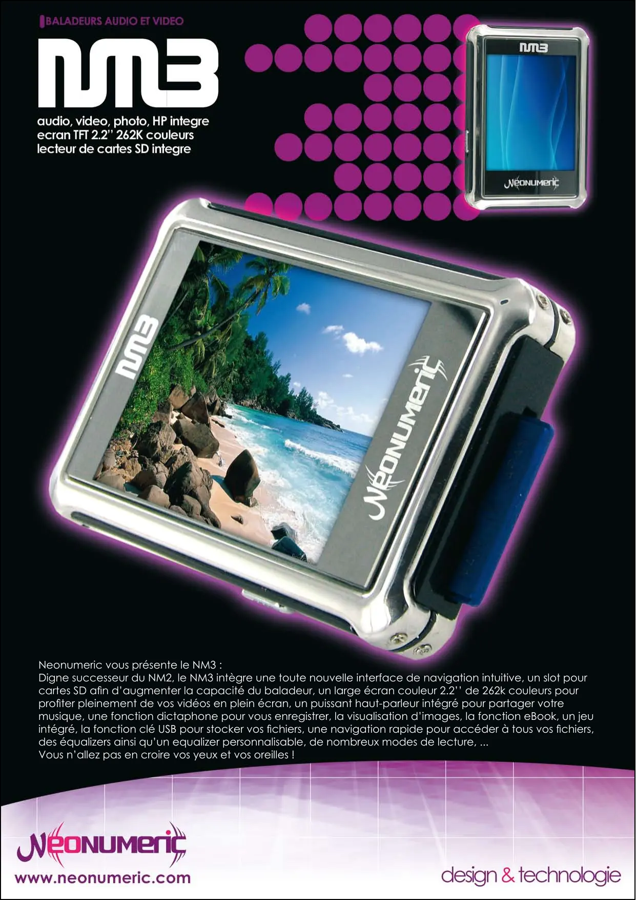 NM3 - Baladeur audio et vidéo NEONUMERIC - Notice d'utilisation et mode d'emploi gratuit